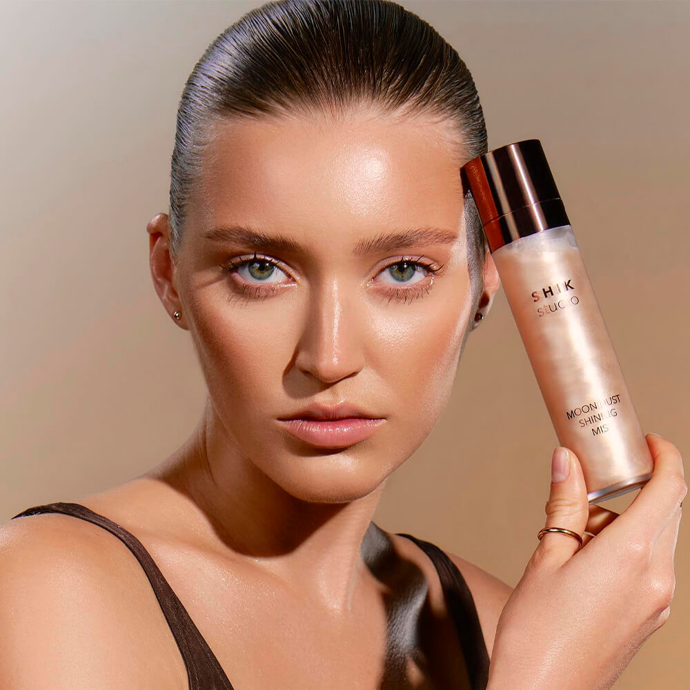 Сияющий спрей для лица и тела Shik Moon Dust Shining Mist подходит для использования в качестве базы или фиксатора для макияжа и иллюминайзера. Невесомая текстура создает на коже мерцающую вуаль, перламутровые частицы отражают и преломляют свет, придавая атласное сияние и деликатное бронзовое свечение. Содержи ниацинамид, коллаген, алоэ вера, экстракты гамамелиса, листьев зелёного чая, жемчуга.
