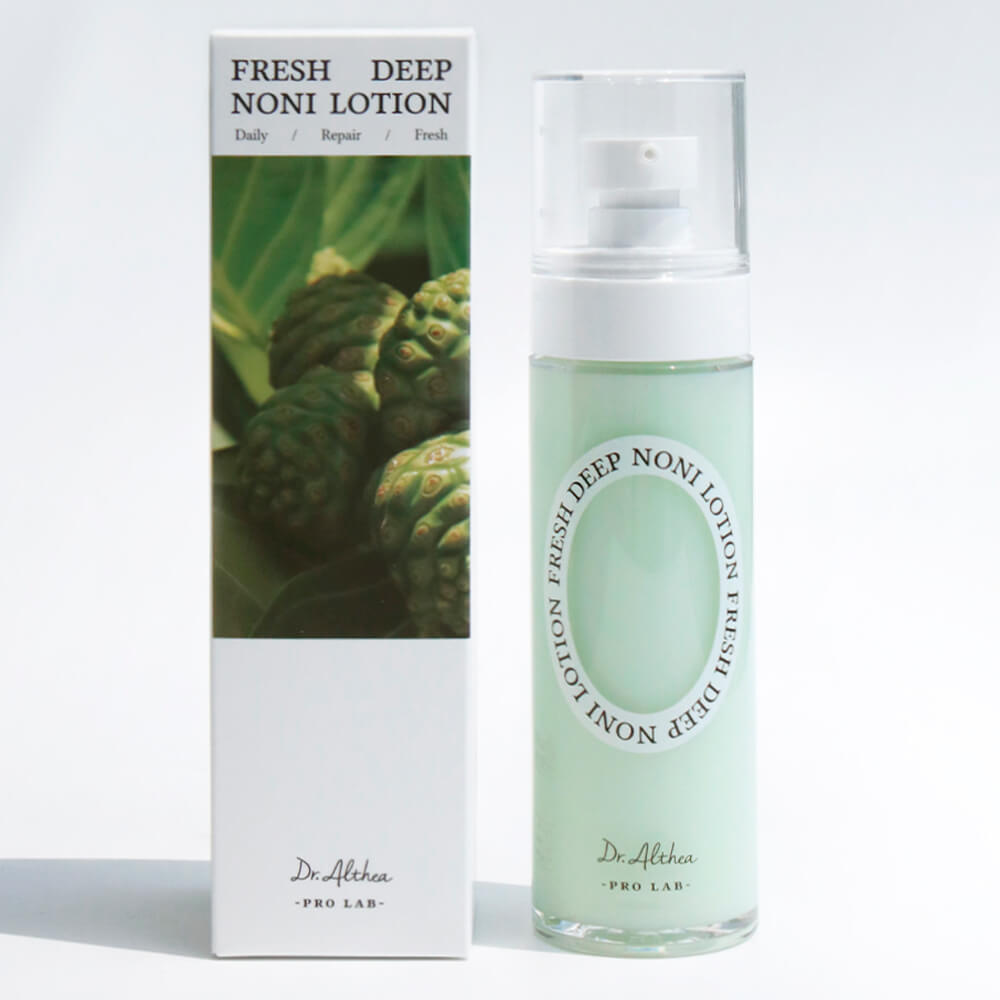 Успокаивающий лосьон с нони для глубокого увлажнения Dr. Althea Fresh Deep Noni Lotion смягчает, восстанавливает и заживляет кожу, устраняет ощущение стянутости и сухости, снимает покраснение и зуд. Средство с лёгкой гелеобразной текстурой восполняет недостаток влаги, предотвращает шелушение и раздражение, ускоряет процесс заживления. Приятно освежает при нанесении, не оставляет липкости. Содержит высокую концентрацию экстракта нони, а также экстракты центеллы, авокадо, артишока, иерихонской розы и красного алоэ, гиалуроновую кислоту и эфиры жожоба.