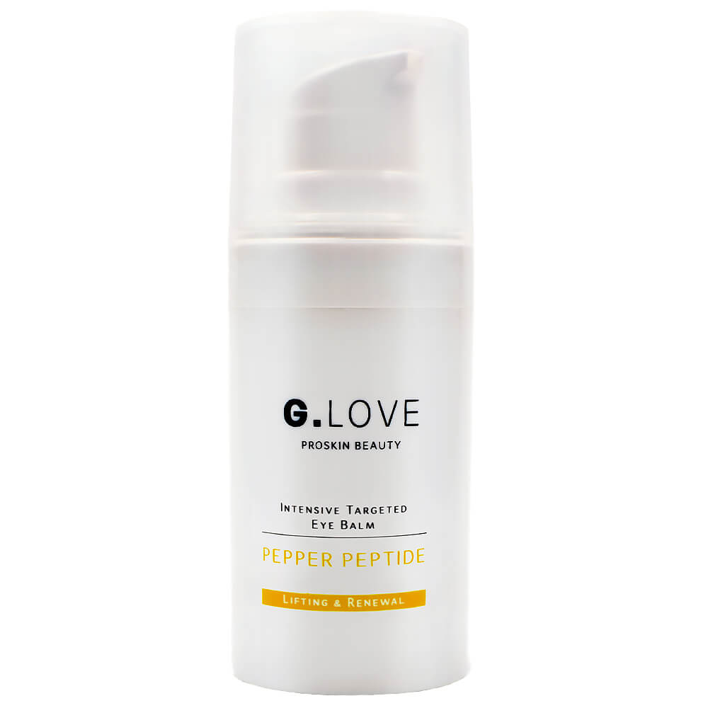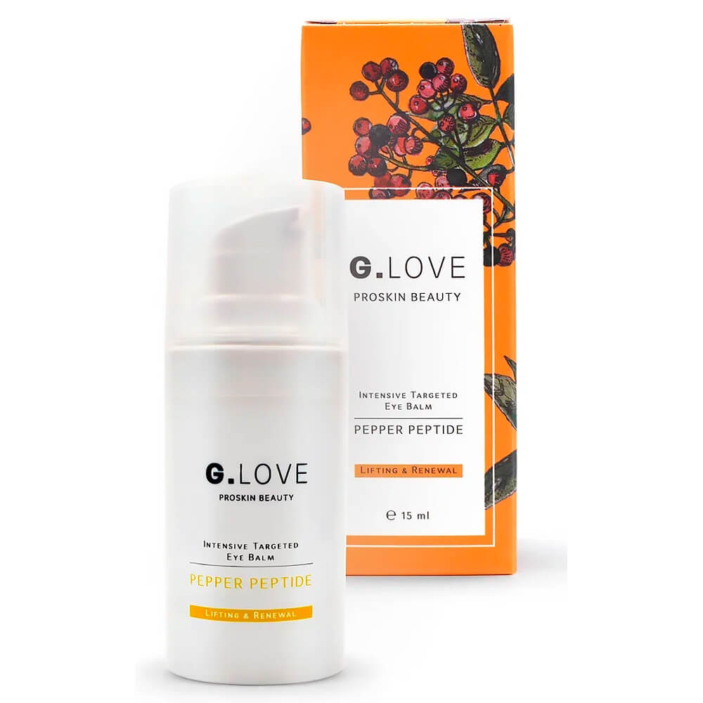 Бальзам от мимических морщин вокруг глаз G.Love Intensive Targeted Eye Balm Pepper Peptide оказывает ботулоподобный эффект за счёт мю-конотоксина в составе, расслабляя лицевые мышцы и препятствуя появлению морщинок. Средство очерчивает контур глаз, разглаживает, поддерживает упругость и эластичность, увлажняет и питает, оказывает лифтинг-эффект. Содержит экстракт сычуаньского перца, ниацинамид, пептиды, витамин C, масло виноградной косточки и молочные протеины.