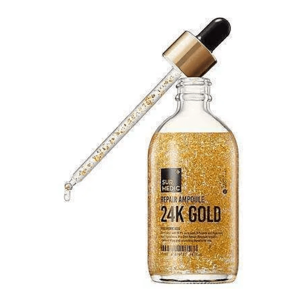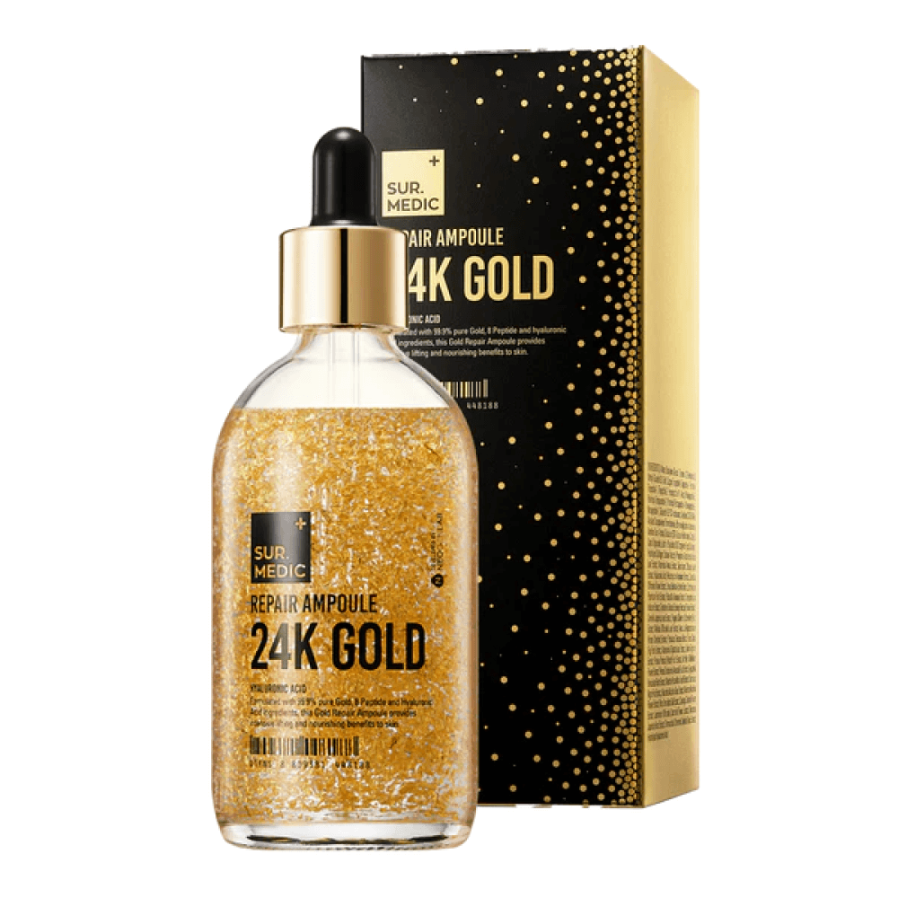 Омолаживающая ампула с золотом и пептидами SUR.MEDIC Repair Ampole 24K Gold обладает ревитализирующим действием, устраняет тусклость и обезвоженность. Стимулирует микроциркуляцию и процессы кровообращения, мягко осветляет пигментные пятна и улучшает цвет лица. Содержит 10 видов пептидов, гиалуроновую кислоту, коллаген, экстракты авокадо, баобаба, лотоса и жасмина.