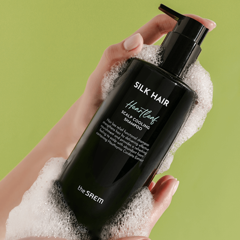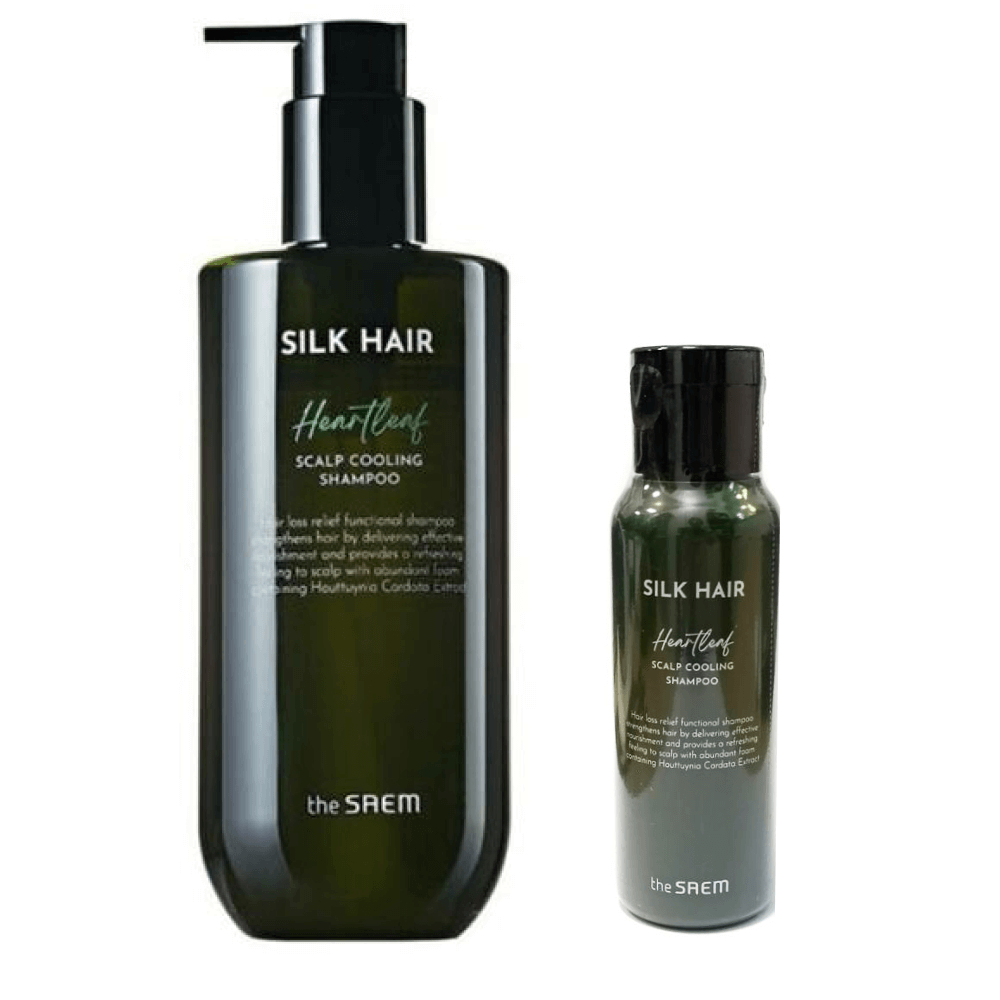Освежающий шампунь для борьбы с выпадением волос The Saem Silk Hair Heartleaf Scalp Cooling Shampoo глубоко очищает кожу головы, удаляет все загрязнения, шелушения и излишки кожного сала. Нормализует работу сальных желёз, продлевая чистоту волос, устраняет неприятный запах. Мягкий травяной состав не раздражает и не провоцирует сухости, подходит даже для чувствительной кожи головы. Содержит экстракт хауттюйнии, растительные протеины, ментол и BHA-кислоту.