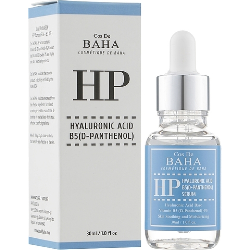 Сыворотка с гиалуроновой кислотой и пантенолом Cos De Baha Hyaluronic Acid B5 (D-Panthenol) Serum быстро и эффективно успокаивает кожу, увлажняет и предотвращает обезвоживание. Способствует удержанию влаги в эпидермисе, разглаживает мимические морщины и предотвращает появление новых. Осветляет пигментацию и постакне.