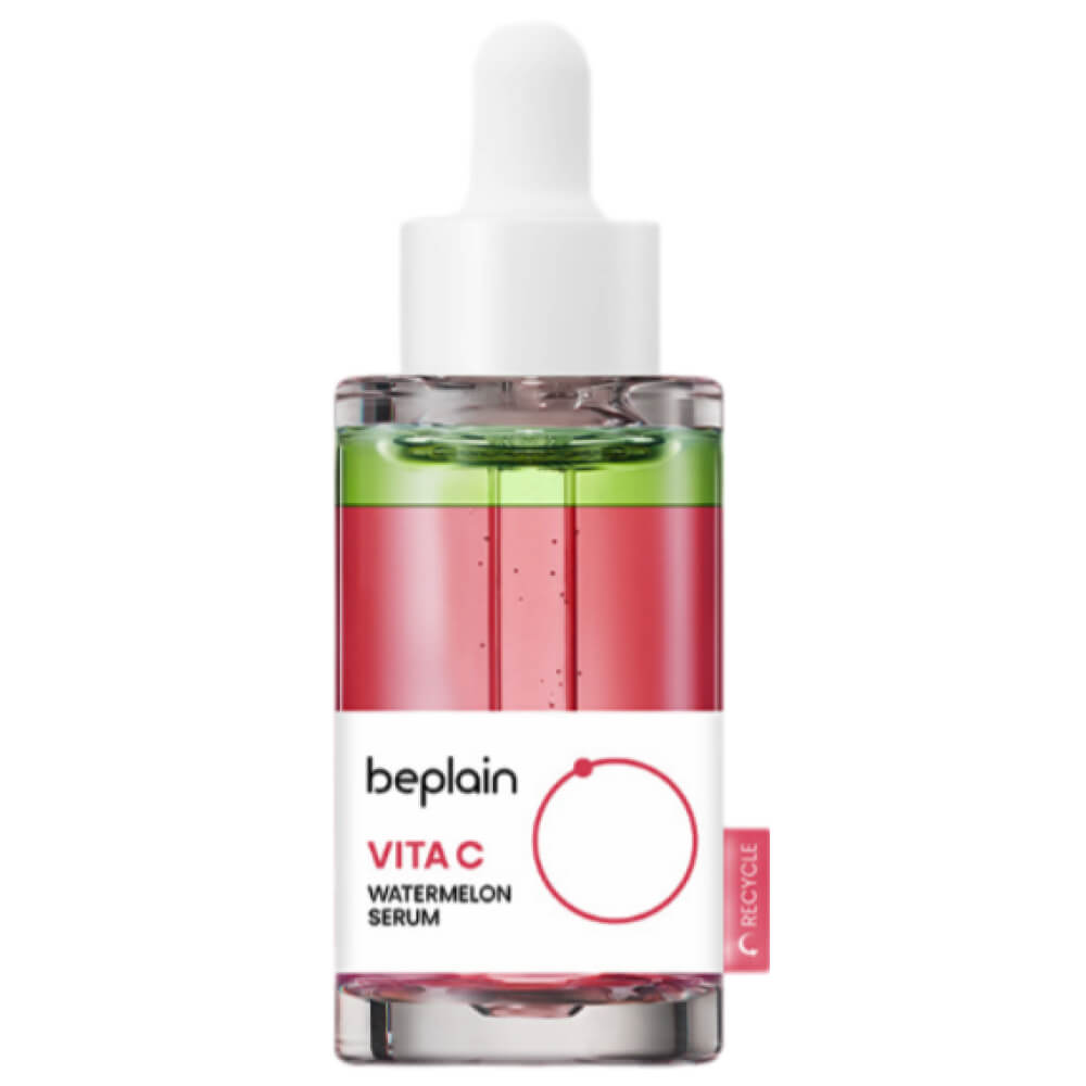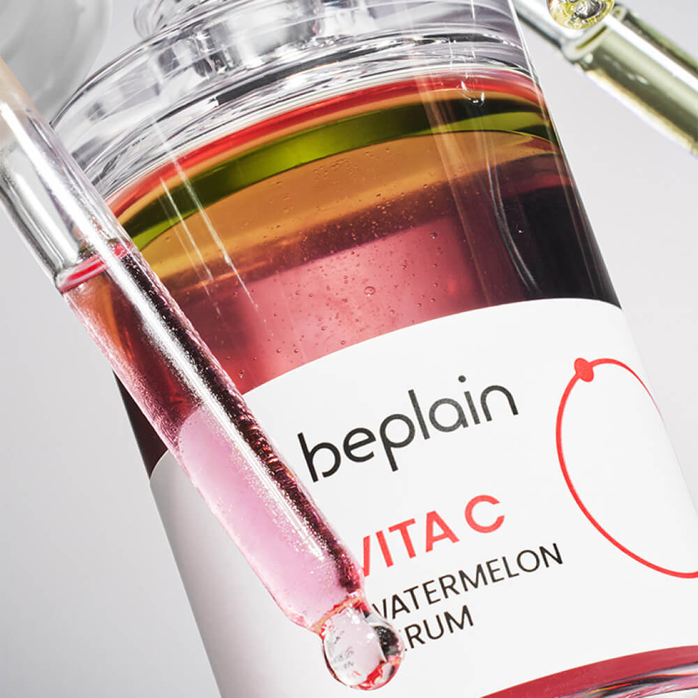 Сыворотка для сияния кожи с арбузом beplain Vita C Watermelon Serumмягко осветляет и выравнивает тон, избавляет от тусклости и значительно улучшает цвет лица. Подавляет работу клеток-меланоцитов и способствует избавлению от пигментации, рассасывает застойные пятна. Тонизирует, увлажняет и замедляет процессы старения. Содержит ниацинамид, витамин С, глутатион и кофеин.