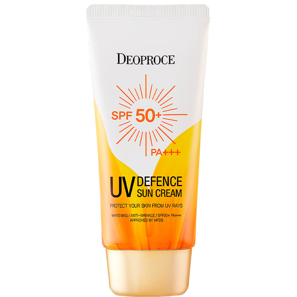 Солнцезащитный крем с муцином улитки DeoproceUV Defence Sun Protector SPF50+ PA+++ надёжно блокирует УФ-излучение, защищая кожу от повреждения, появления нежелательной пигментации и преждевременного старения. Средство с нежной текстурой бежевого цвета обеспечивает натуральное гладкое покрытие и ровный тон, отлично подходит в качестве базы под макияж. Содержит муцин улитки, алоэ вера, масло макадамии, ниацинамид, масло жожоба и гиалуроновую кислоту, а также химические фильтры нового поколения и физические фильтры.