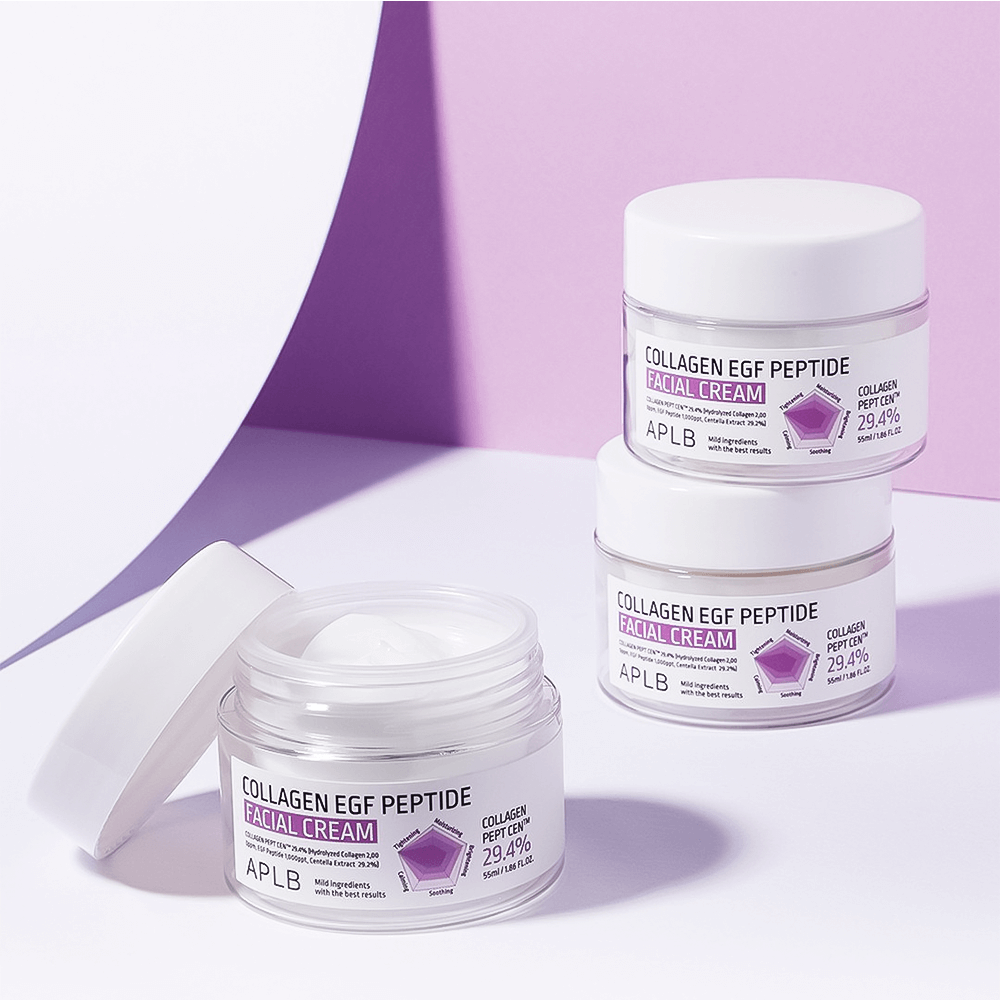 Крем для упругости кожи c коллагеном и пептидами APLB Collagen EGF Peptide Facial Cream предназначен для профилактики возрастных изменений: предупреждает птоз и деформацию овала лица, разглаживает морщины, выравнивает тон и текстуру кожи. Средство активизирует барьерные функции, укрепляет местный иммунитет, снижает реактивность. Содержит коллаген, EGF, экстракт центеллы азиатской, полисахариды.
