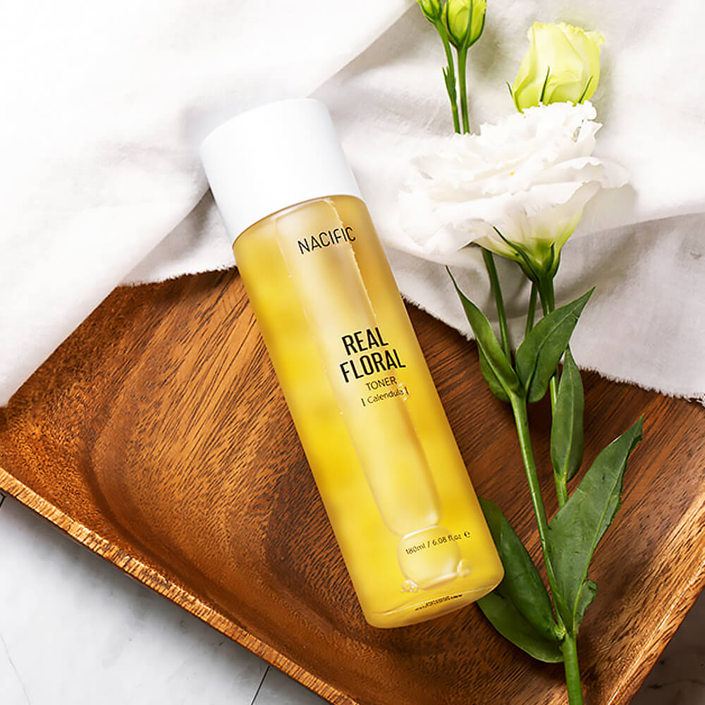 Успокаивающий и увлажняющий тонер NACIFIC Real Floral Toner Calendula с лепестками календулы прекрасно подходит для чувствительной кожи. Средство снимает воспаления, устраняет покраснения, улучшает цвет лица, увлажняет. Содержит экстракт цветков календулы, экстракт лаванды, розмарина, центеллы, чайного дерева, ромашки и мяты.