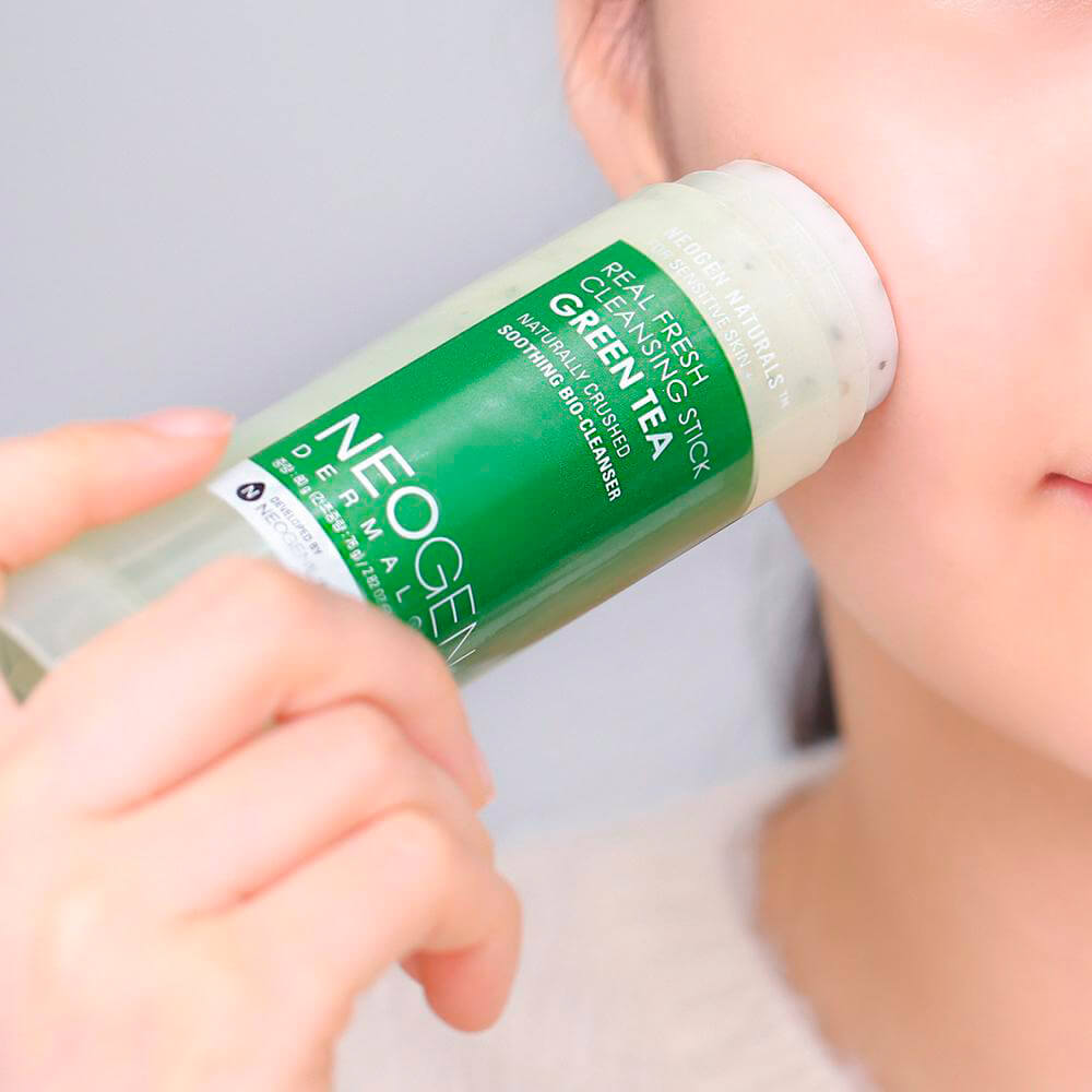 Очищающий бальзам в стике Neogen Real Fresh Cleansing Stick Green Tea бережно удаляет макияж и загрязнения, очищает поры от пыли и излишков себума, предотвращает появление чёрных точек. Не сушит и не стягивает, оставляя комфортное ощущение увлажнённости после умывания. Содержит листья зелёного чая, бетаин, масла кокоса, подсолнечника, камелии, оливы и лимона. Отлично подходит в качестве средства для умывания в travel-формате.