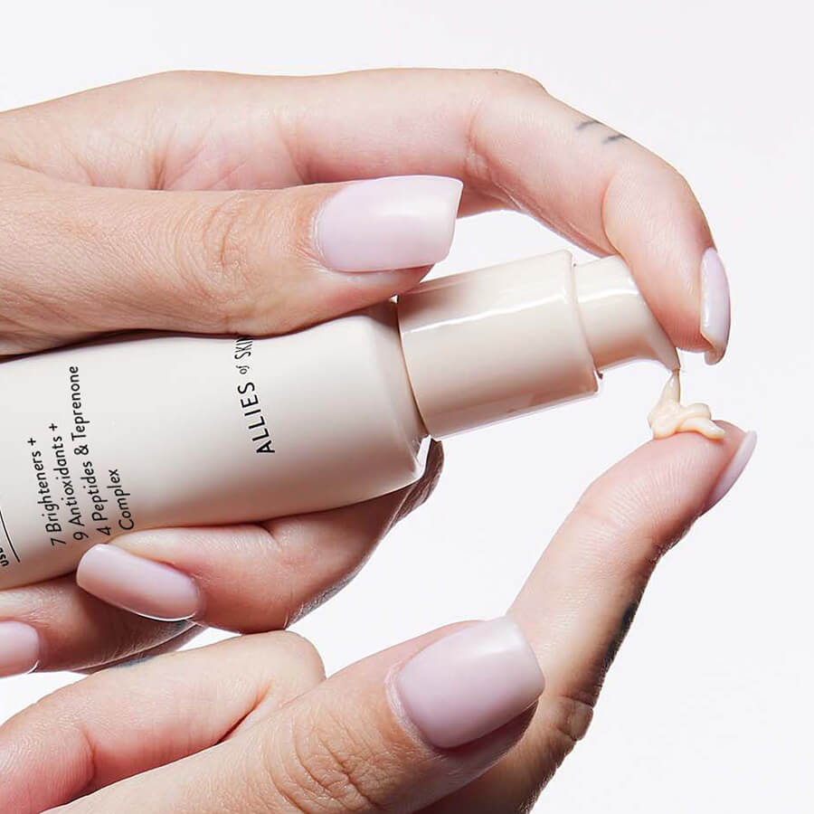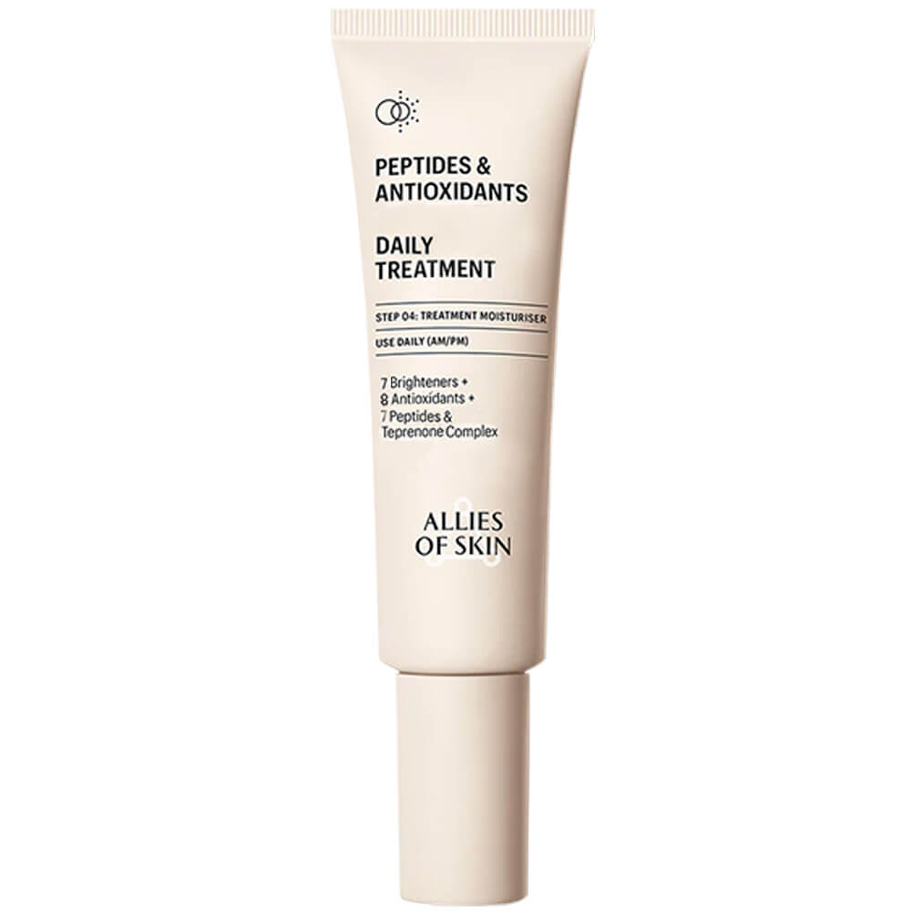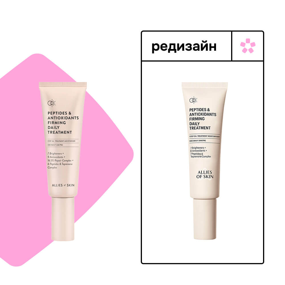 Пептидный крем-маска против морщин Allies Of Skin Peptides & Antioxidants Firming Daily Treatment — супер-коктейль для молодости кожи. Работает с уже имеющимся морщинами и препятствует появлению новых, запускает синтез коллагена и повышает упругость. Подходит для ежедневного применения. Содержит 7% комплекс пептидов, витамин С, 2% ниацинамида, 1.5% кофеина и 3% новейшего актива Renovage™.