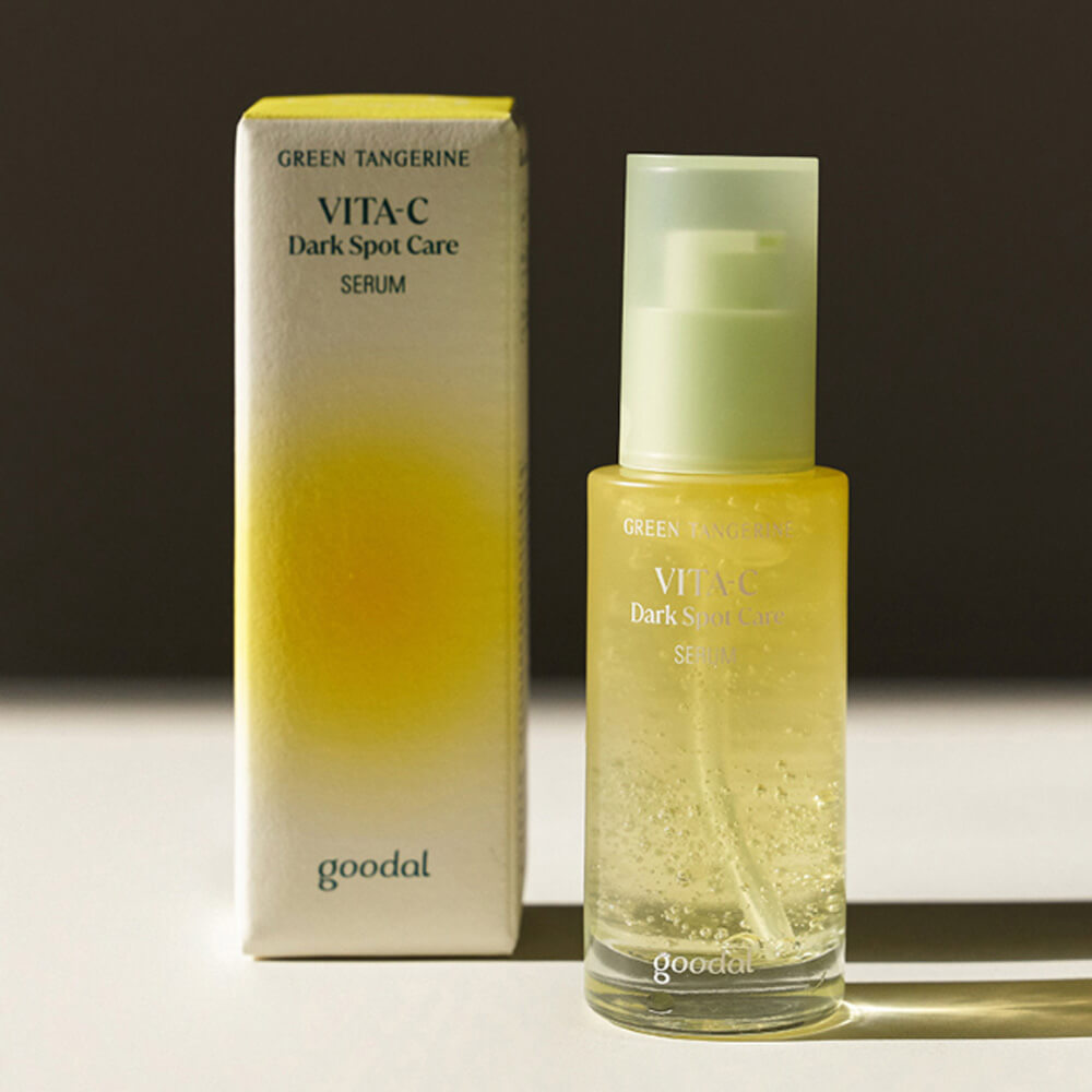 Осветляющая сыворотка для сияния кожи Goodal Green Tangerine Vita C Dark Spot Care Serum борется с пигментными пятнами, неровным тоном и тусклостью, сокращает видимость веснушек и постакне, препятствует образованию новой пигментации. Увлажняет и смягчает кожу, оказывает антиоксидантное действие и замедляет процесс старения. Содержит витамин C, экстракт зелёного танжерина, 4% ниацинамида, арбутин, 5 растительных масел, экстракты солодки и ромашки, пантенол, а также экстракт центеллы и 2 её производных.