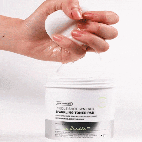 Обновляющие пэды с газированной водой VT Cosmetics Reedle Shot Synergy Sparkling Toner Pad очищают кожу от излишков себума, удаляют омертвевшие клетки эпидермиса, выравнивают микрорельеф. Стимулируют процесс обновления на клеточном уровне, избавляют от сухости и шелушений, смягчают огрубевшие участки. Средство восстанавливает защитные функции чувствительной кожи, а также обеспечивает длительное увлажнение. Содержат комплекс центеллы азиатской, экстракты зелёного прополиса и листьев чайного дерева, пантенол и Aquaxyl.