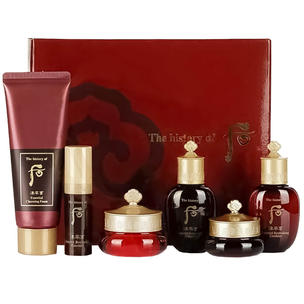 Антивозрастной премиум-набор миниатюр для лица The History of Whoo Jinyulhyang Special Gift Set содержит 6 продуктов в travel-формате, которые обеспечивают полноценный многоступенчатый уход за кожей. Пенка для умывания, тонер, эмульсия, эссенция, кремы для лица и для век: все средства повышают упругость и эластичность, сокращают выраженность морщин, интенсивно питают и увлажняют. Миниатюрный формат позволяет брать продукты в путешествие. Роскошное оформление набора делает его отличным подарком для тех, кто любит премиум-уход за кожей.