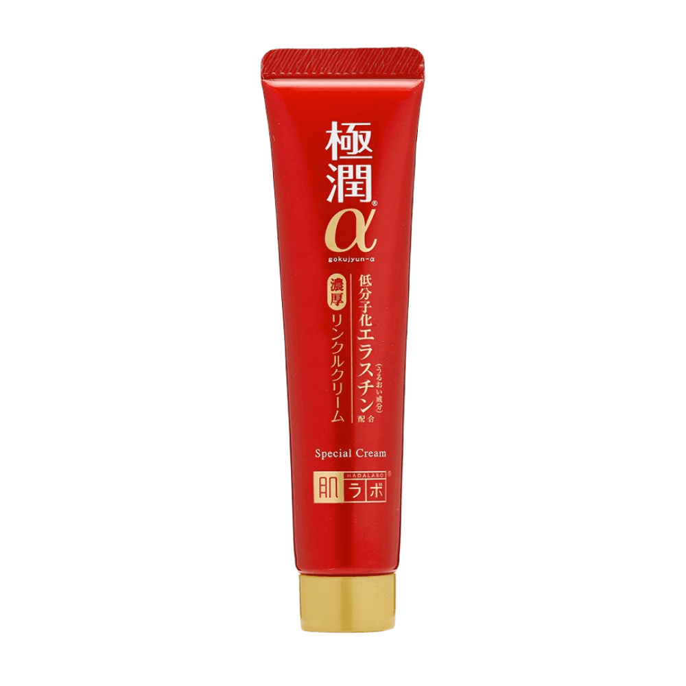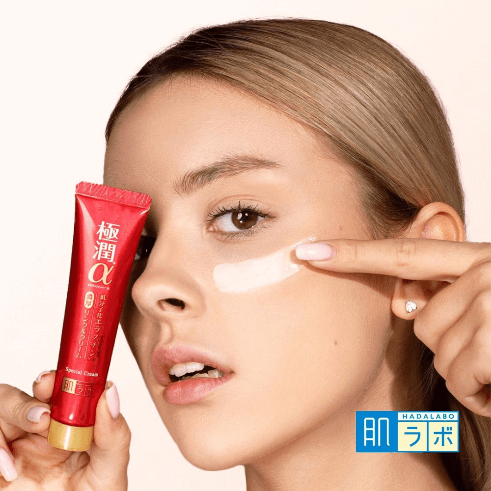 Увлажняющий крем для век против морщин Hada Labo Gokujyun Alpha помогает избавиться от сухости и чувства стянутости вокруг глаз, активно питает, восстанавливает липидную мантию и повышает упругость кожи. Содержит комплекс из 4 видов гиалуроновой кислоты, коллаген, пептиды, сквалан и растительные масла.
