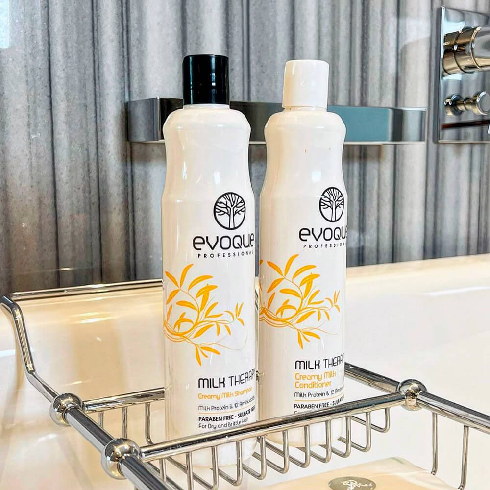 Восстанавливающий шампунь с молочными протеинами Evoque Milk Therapy Creamy Milk Shampoo деликатно очищает кожу головы, не нарушая естественный защитный слой. Средство с рН 4,5-5,5 не пересушивает, не вызывает зуда и стянутости от мытья. Делает волосы сильными, мягкими и шелковистыми, придаёт здоровый блеск. Содержит молочные протеины и 12 аминокислот, без сульфатов и парабенов.