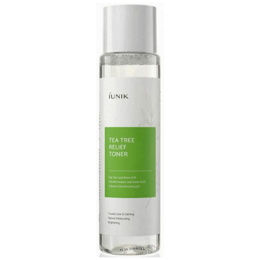Тоник с чайным деревом для проблемной кожи iUnik Tea Tree Relief Toner предназначен специально для ухода за кожей с акне, угревой сыпью. Предотвращает появление новых несовершенств, успокаивает кожу, снимает покраснения. Оказывает бактерицидное действие. Восстанавливает естественный pH после умывания и готовит кожу к дальнейшему уходу. Имеет высокое содержание экстракта чайного дерева (67%), а также содержит центеллу азиатскую и ниацинамид.