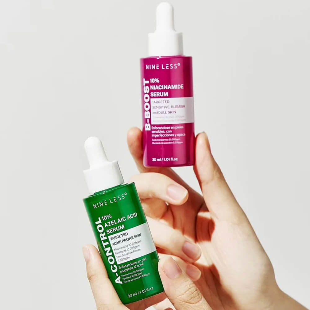 Сыворотка для яркости тона с 10% ниацинамида NINE LESS B-Boost 10% Niacinamide Serum обладает себорегулирующим действием, сокращает выделение кожного себума и способствует сужению пор. Выравнивает общий тон кожи, осветляет пигментные пятна и постакне. Содержит глутатион, витамин С, комплекс пептидов и транексамовую кислоту.