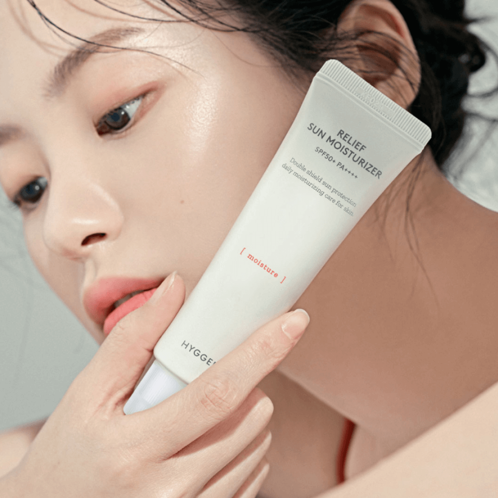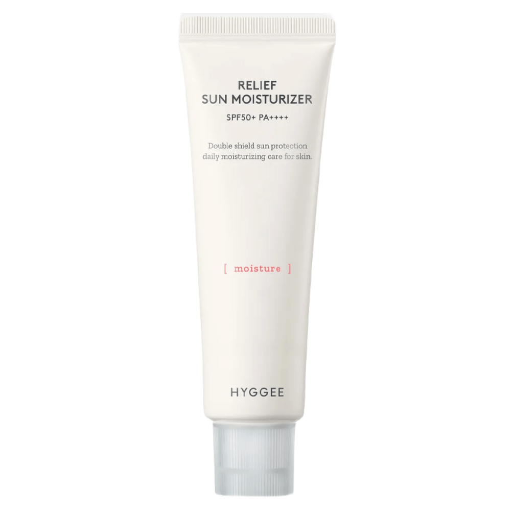 Увлажняющий солнцезащитный крем с успокаивающим действием Hyggee Relif Sun Moisturizer SPF50+ PA++++обладает высокой степенью защиты от разрушающего действия ультрафиолета, отлично избавляет от сухости и шелушением. Помогает снять зуд и покраснения. Содержит фотостабильные химические фильтры нового поколения, воду кипариса, альфа-бисаболол и AQUAXYL.