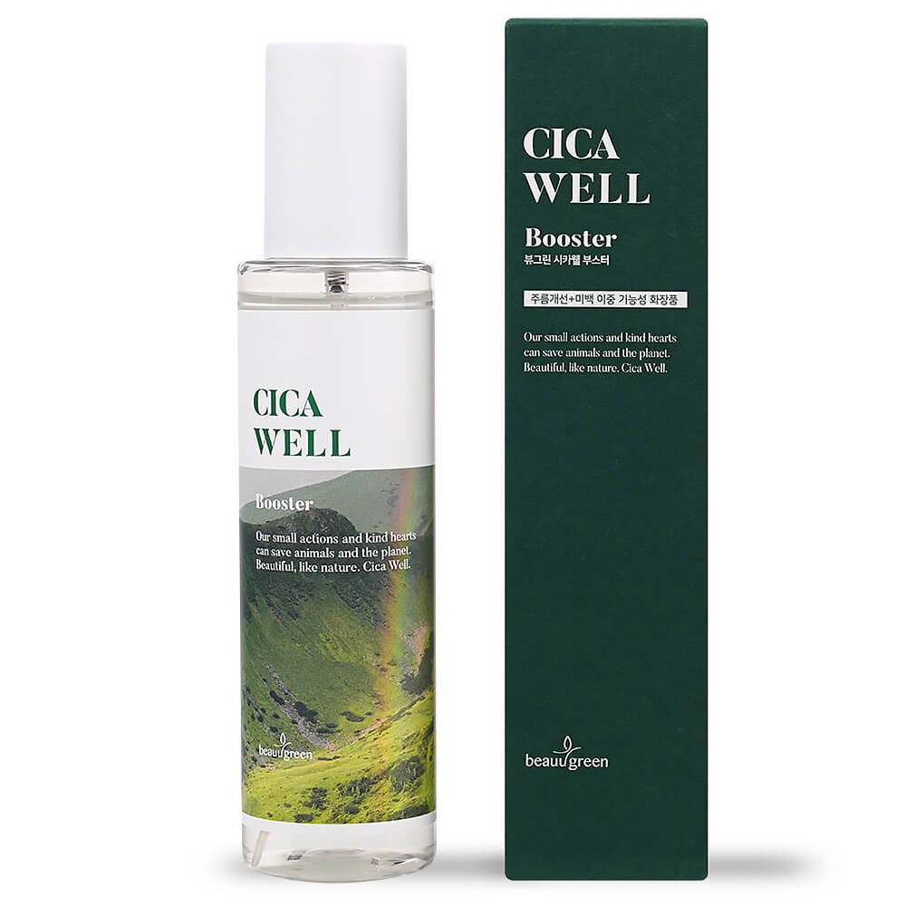 Тонер-мист с центеллой для чувствительной кожи BeauuGreen Cica Well Booster успокаивает и смягчает, увлажняет, восстанавливает оптимальный уровень pH, выравнивает тон, предотвращает воспалительный процесс и способствует заживлению кожи. Содержит ниацинамид, аденозин, гиалуроновую кислоту и растительные экстракты. Состав имеет уровень безопасности EWG Green.