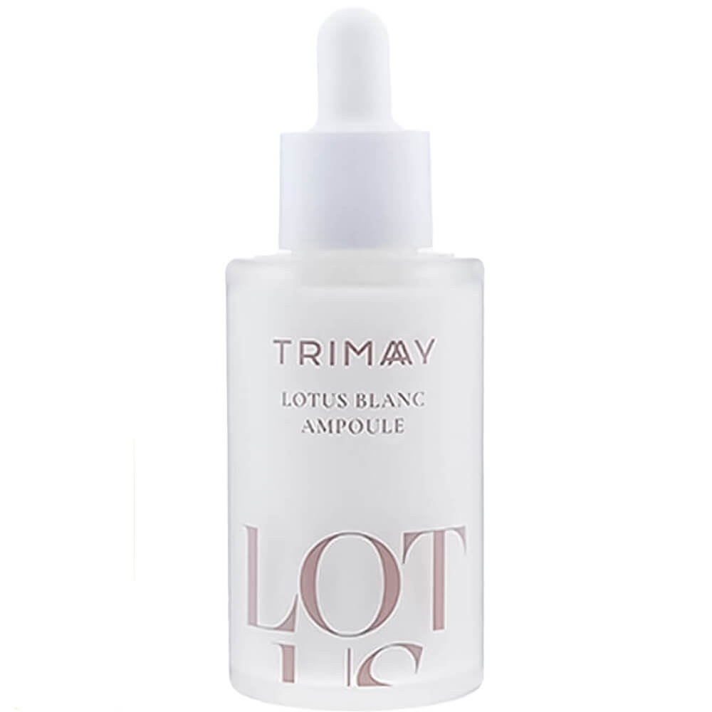 Сыворотка для выравнивания тона на основе лотоса TrimayLotus Blanc Ampoule осветляет, предотвращает появление пигментации, разглаживает микрорельеф, ускоряет заживление и уменьшает жирный блеск, придавая коже мягкость и наполняя сиянием. Содержит 34% лотоса, ниацинамид, аскорбиновую и гиалуроновую кислоту, пантенол, аргинин, экстракт граната и протеины сои.