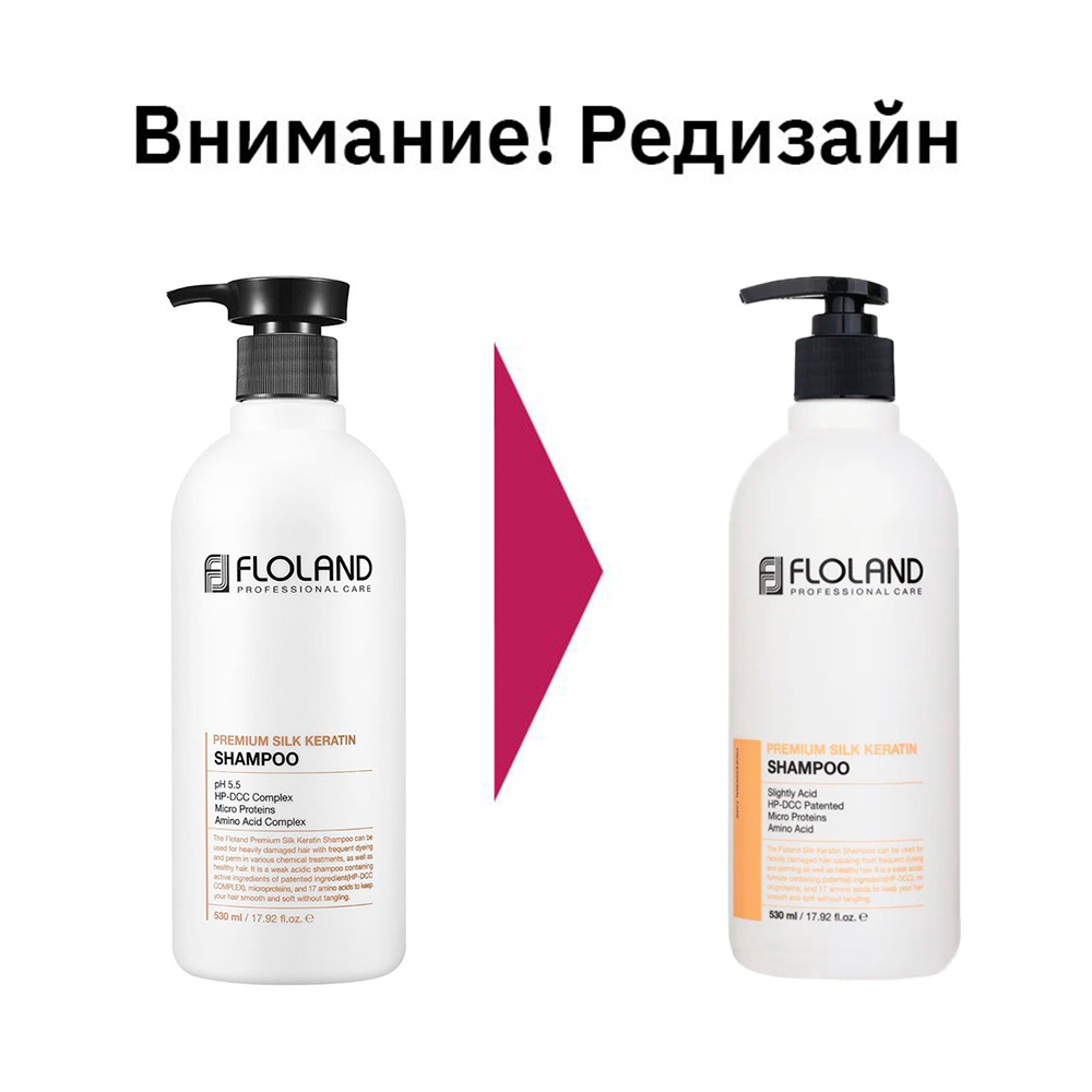 Восстанавливающий шампунь с кератином Floland Premium Silk Keratin Shampoo обеспечивает профессиональный уход за волосами в домашних условиях и выполняет 4 действия: очищает кожу головы и волосы от загрязнений, питает и укрепляет корни волос, повышает эластичность локонов, покрывает каждый волосок защитной пленкой, которая уменьшает ломкость. В состав входят комплексы протеинов, аминокислот, масел. Шампунь имеет слабощелочной pH — 5,5.