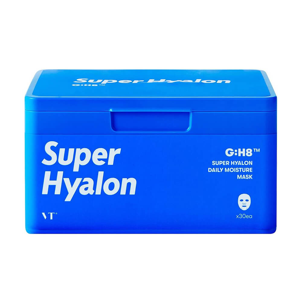 Набор ультраувлажняющих тканевых масок VT Cosmetics Super Hyaluron Daily Moisture Mask содержит 30 освежающих масок, которых хватит на месяц ежедневного применения. Средство восстанавливает сухую кожу, устраняет обезвоженность, смягчает огрубевшие и обветренные участки, делает кожу нежной и гладкой. Помогает поддерживать оптимальный уровень увлажнённости в течение дня, предотвращает чувство стянутости. Тонкое тканевое лекало комфортно ощущается на лице, плотно прилегает и не сползает. Эссенция, которой пропитаны маски, содержит 8 видов гиалуроновой кислоты, полиглутаминовую кислоту (PGA), азулен, комплекс Aquaxyl™, эритритол, аминокислоты и аллантоин.