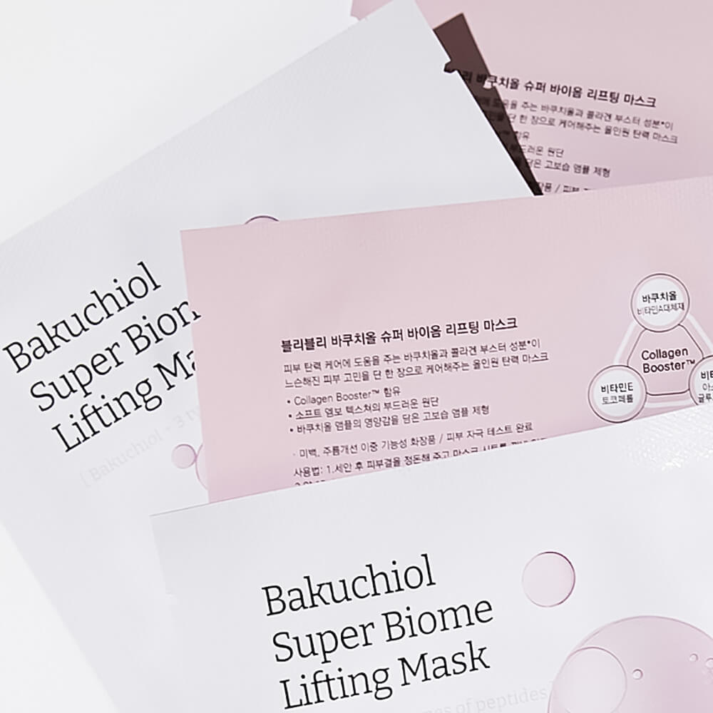 Лифтинг-маска с бакучиолом и пептидами Vely Vely Bakuchiol Super Biome Lifting Mask интенсивно увлажняет, питает и смягчает кожу. Стимулирует синтез коллагена, за счёт чего подтягивает и разглаживает, сокращает выраженность морщин, придаёт упругость и эластичность. Укрепляет гидролипидный барьер, препятствует сухости и шелушению. Содержит комплекс Collagen Booster™, состоящий из бакучиола, витаминов C и E. В составе также 3 пептида, 6 видов гиалуроновой кислоты и растительные масла.