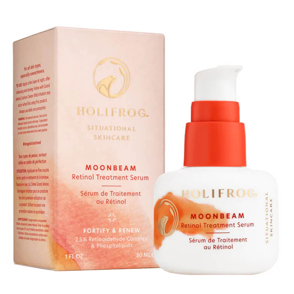Сыворотка с инкапсулированным ретинолом для молодости кожи HoliFrog Moonbeam Retinol Treatment Serum сокращает морщины, устраняет тусклость и выравнивает тон, делая кожу гладкой, упругой и сияющей. Содержит 2.5% запатентованного компонента IconicA — инкапсулированную форму ретиналя, а также ретинол, фосфолипиды, сквалан, комплекс DermCom, экстракт витекса и питательные масла. Уровень pH: 4.5-5.5.