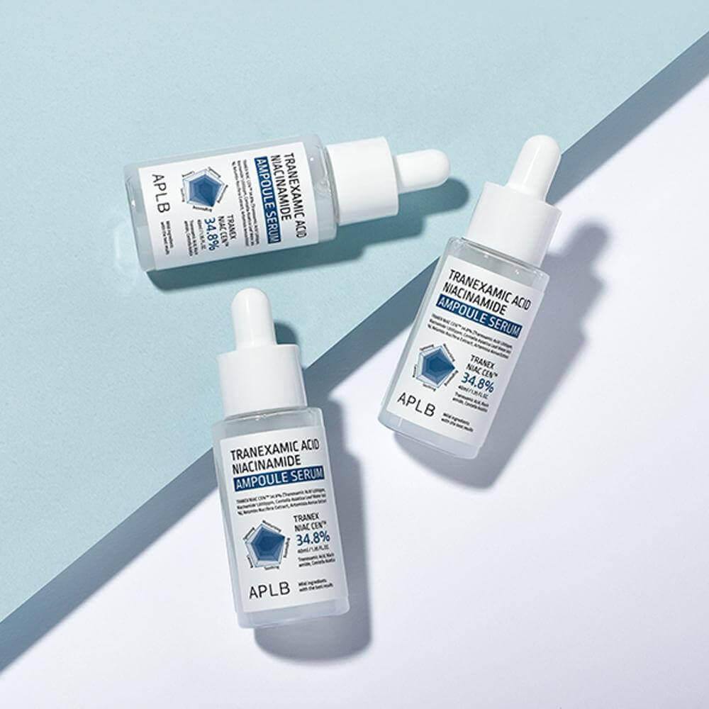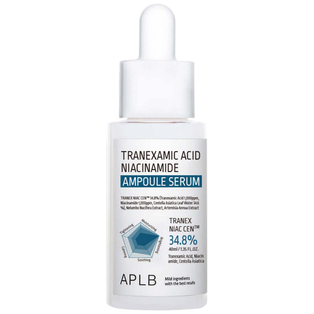 Ампульная сыворотка с транексамовой кислотой APLB Tranexamic Acid Niacinamide Ampoule Serumблокирует синтез клеток-меланоцитов, которые провоцируют появление гиперпигментации, и замедляет старение кожи. Осветляет пигментные и застойные пятна, выравнивает тон кожи, избавляет от тусклости и улучшает цвет лица. Содержит ниацинамид, экстракт центеллы азиатской, лотоса и полыни.