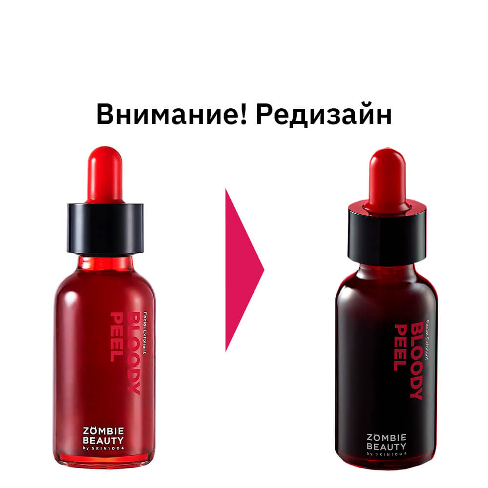 Кровавая пилинг-сыворотка с кислотами SKIN1004 Zombie Beauty Bloody Peel отшелушивает роговой слой, обновляя и улучшая текстуру кожи. Средство устраняет неровный тон и тусклость, предотвращает закупоривание пор и вызванные этим воспаления, смягчает и разглаживает, делает кожу нежной. Содержит гликолевую (AHA) и салициловую (BHA) кислоты, глюконолактон (PHA), экстракты томата, яблока, свеклы и граната.