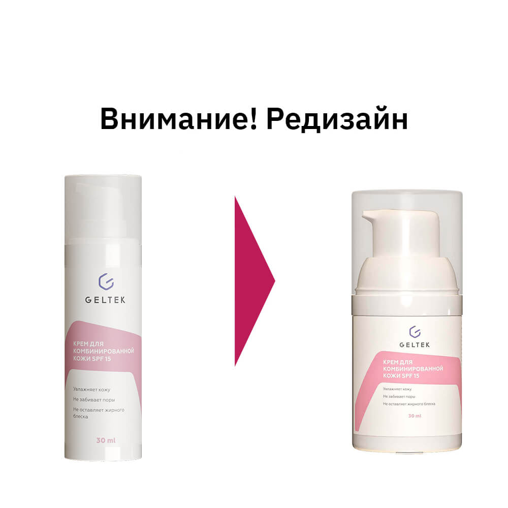 Дневной крем для комбинированной кожи с фактором защиты от солнца GeltekSPF 15 смягчает и кондиционирует, сглаживает микрорельеф и придаёт бархатистую текстуру. Не утяжеляет, отлично подходит под макияж, обеспечивает защиту от солнца за счёт химических солнцезащитных фильтров. Содержит масла ши и сладкого миндаля, протеины шёлка, низкомолекулярную гиалуроновую кислоту, сок алоэ вера и пантенол.