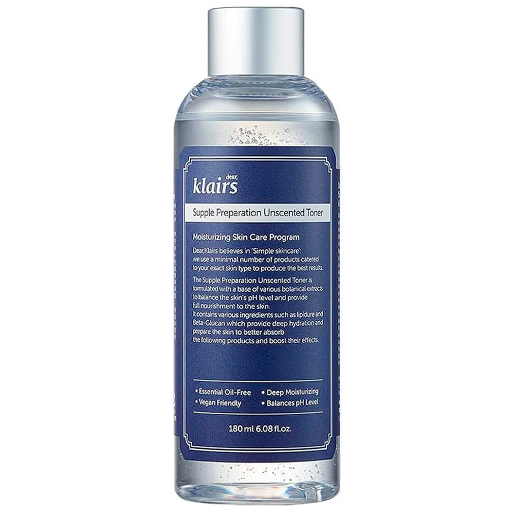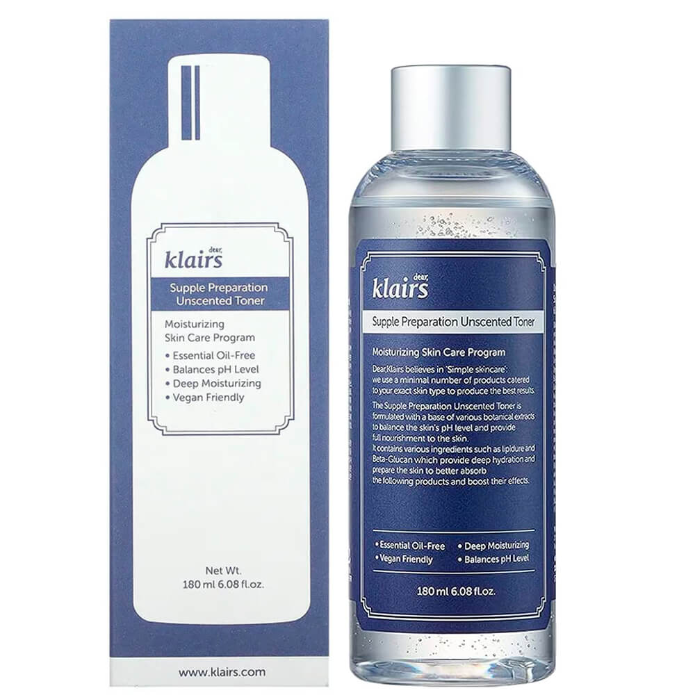 Смягчающий тонер Dear, Klairs Supple Preparation Unscented Toner восстанавливает оптимальный рН-баланс после очищения кожи и повышает эффективность всех последующих шагов ухода. Тонер помогает интенсивно увлажнить кожу, устранить сухость и шелушения. Средство не содержит масел и вредных компонентов и подходит для чувствительной кожи, склонной к жирности.