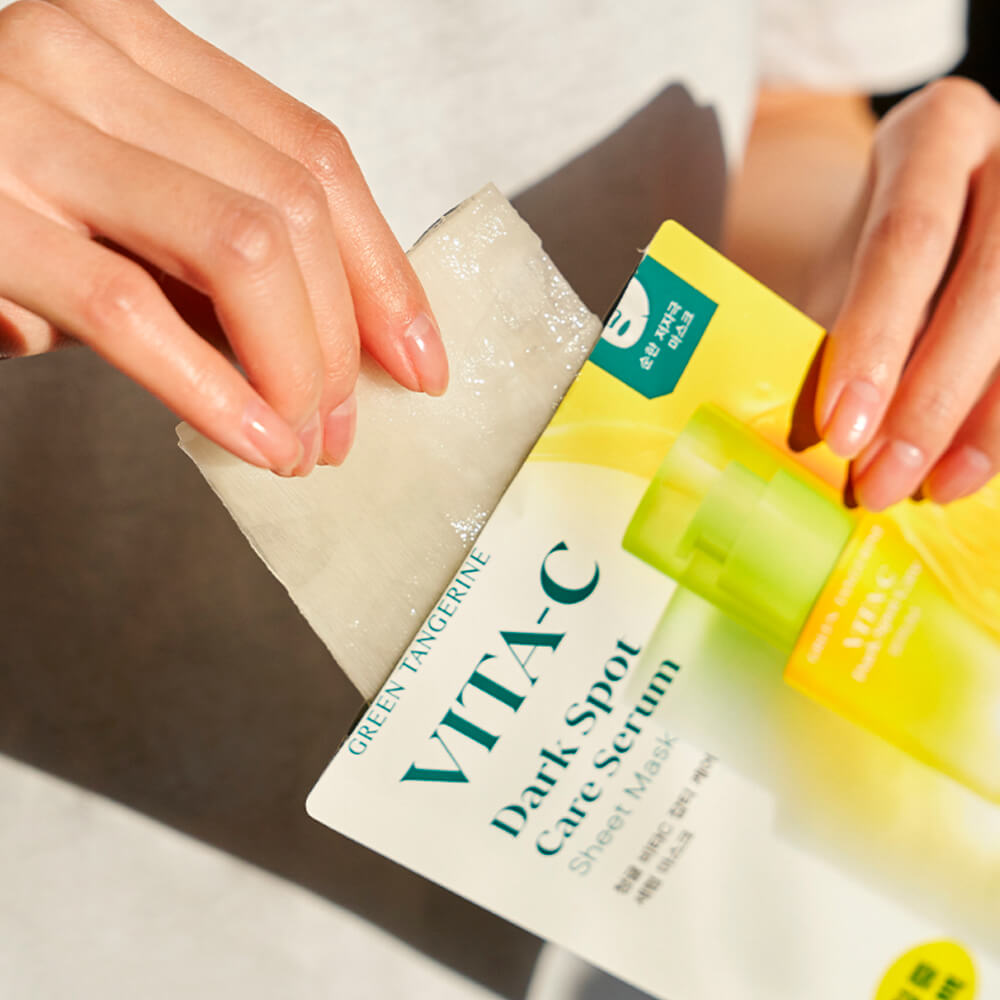 Осветляющая маска с танжерином и витамином C Goodal Green Tangerine Vitamin C Mask выравнивает тон, уменьшает выраженность пигментных пятен, веснушек и следов от акне, делает кожу гладкой и сияющей. Прекрасно увлажняет, насыщает антиоксидантнами и замедляет процесс старения. Тканевая основа создана из биоразлагаемого материала, а активные компоненты извлечены экологичным способом, со сниженным потреблением энергии и меньшим выбросом углекислого газа. Содержит экстракт танжерина, 2 вида витамина C, арбутин, ниацинамид, масла апельсина, лимона и бергамота, гиалуроновую кислоту, аллантоин, кофеин и аденозин.