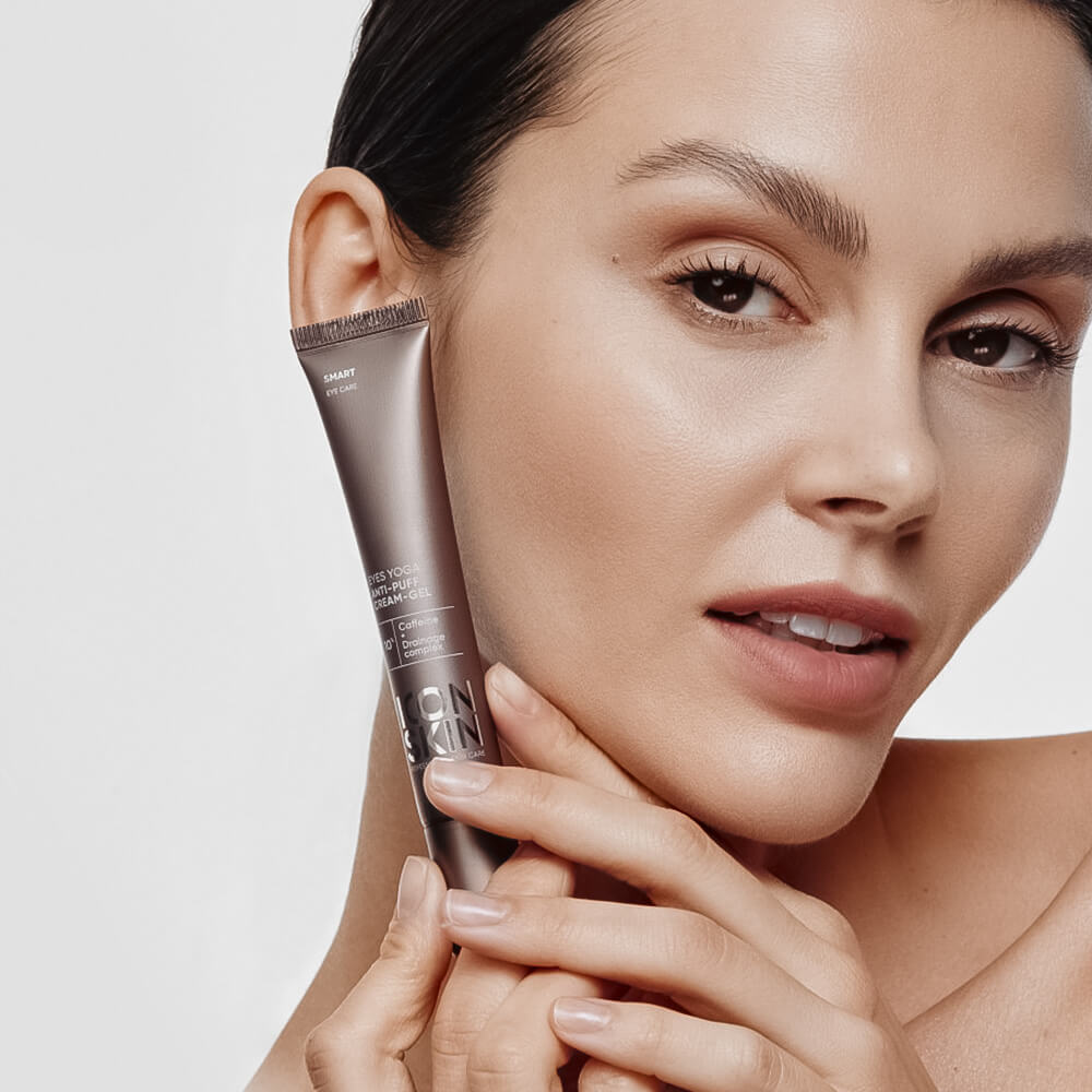 Крем-гель от отёков для кожи вокруг глаз ICON SKIN Eyes Yoga Anti-Puff Cream-Gel оказывает дренажный эффект, уменьшает припухлости и борется с тёмными кругами, сокращает выраженность сосудов, увлажняет и питает. Тонизирует, улучшает состояние тусклой и уставшей кожи век, освежает взгляд. Содержит 10% дренажного комплекса, в который входит кофеин и троксерутин, а также ацетил тетрапептид-5, гесперидин метилхалькон, витамин C, масло жожоба, пуллулан, аллантоин и гиалуроновую кислоту.