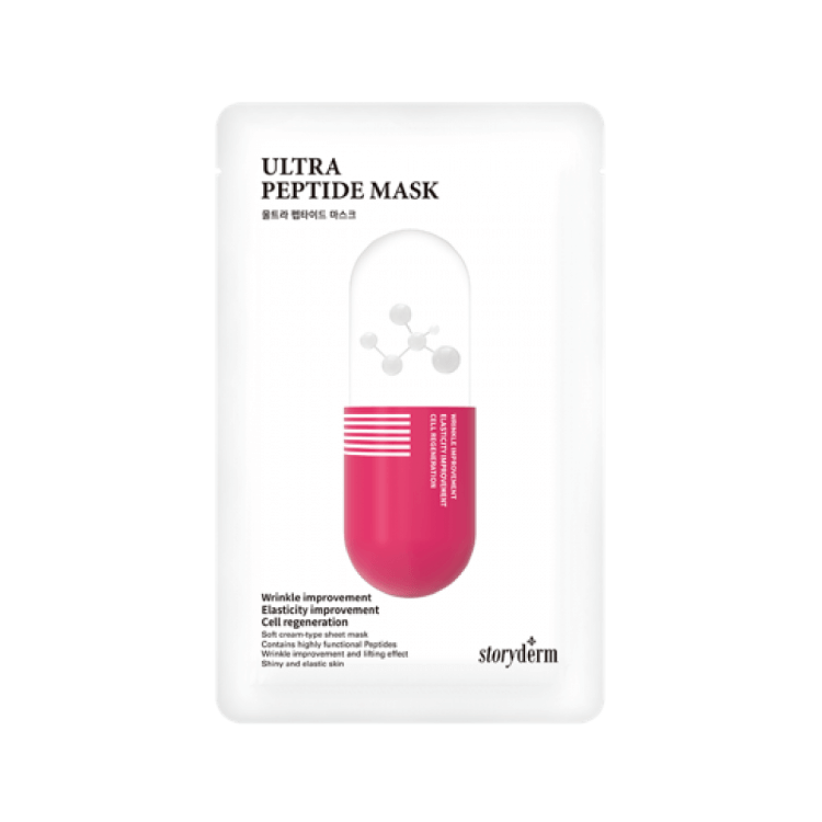 Подтягивающая маска с пептидами Storyderm Ultra Peptide Mask стимулирует выработку коллагена и эластина, активизирует обменные процессы в клетках, придает коже гладкость и упругость, выравнивает рельеф лица. Маска глубоко питает, восстанавливает и поддерживает плотность кожи, придает приятное матовое свечение. Глубоко пропитана эмульсией, обогащенной комплексом пептидов, оказывает омолаживающее и регенерирующее действие. Создает заметный лифтинг-эффект, подтягивает овал лица, способствует разглаживанию морщин и улучшает эластичность кожи.