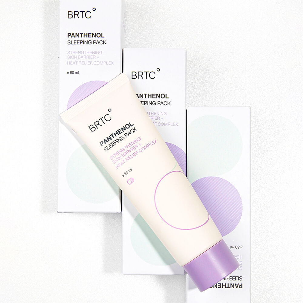 Восстанавливающая ночная маска с пантенолом BRTC Panthenol Sleeping Pack смягчает и интенсивно увлажняет, дарит комфорт чувствительной и раздражённой коже. Успокаивает покраснение и раздражение, ускоряет заживление ранок и микротрещинок, восстанавливает целостность естественного защитного барьера. Повышает упругость, снижает температуру кожи, обеспечивает увлажнение до 72 часов. Содержит пантенол (53,000 ppm), 38% гидролата центеллы, пептиды, глутатион, антарктицин, охлаждающий комплекс Heat Relief Complex™ и гиалуроновую кислоту.