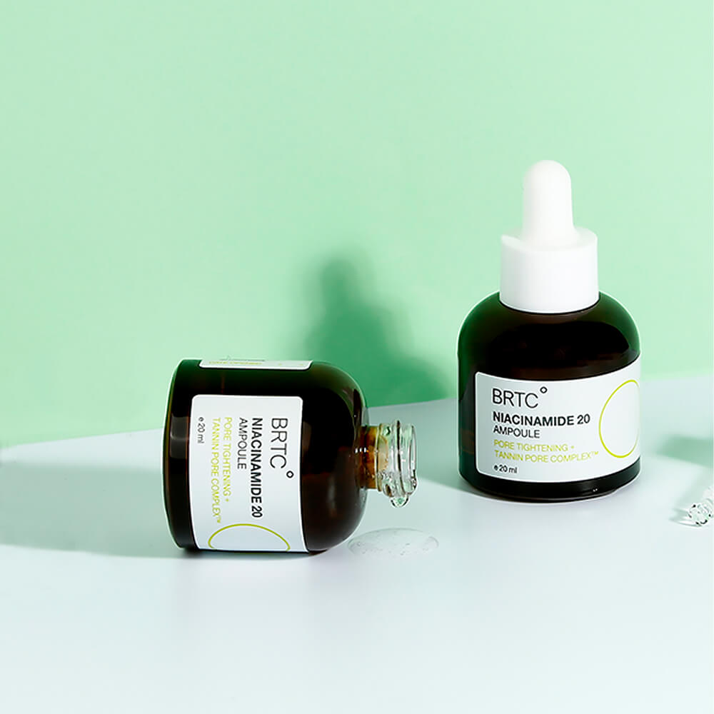 Противовоспалительная ампула с 20% ниацинамида BRTCNiacinamide 20 Ampoule выравнивает текстуру кожи, предотвращает появление чёрных точек и воспалений, поддерживает чистоту пор и визуально сужает их. Устраняет жирный блеск и снижает чрезмерное себовыделение, делает кожу гладкой и увлажнённой. Содержит 20% ниацинамида, себорегулирующий комплекс Tannin™ и витаминный комплекс Multi Vital Force™, а также экстракты центеллы и портулака.