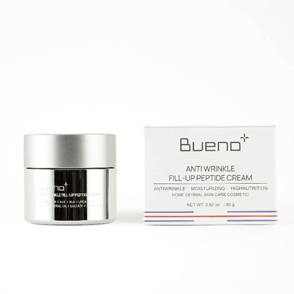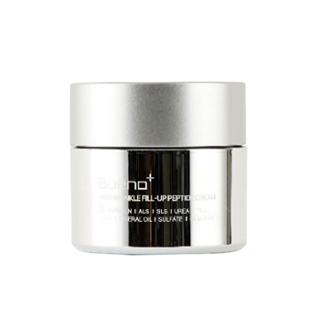 Пептидный крем против морщин Bueno Anti-Wrinkle Fill Up Peptide Cream оказывает мощное омолаживающее действие, способствует разглаживанию мимических морщинок и уменьшает глубину кожных заломов. Выравнивает рельеф кожи, улучшает текстуру, оздоравливает. Содержит комплекс пептидов, ниацинамид и гиалуроновую кислоту.
