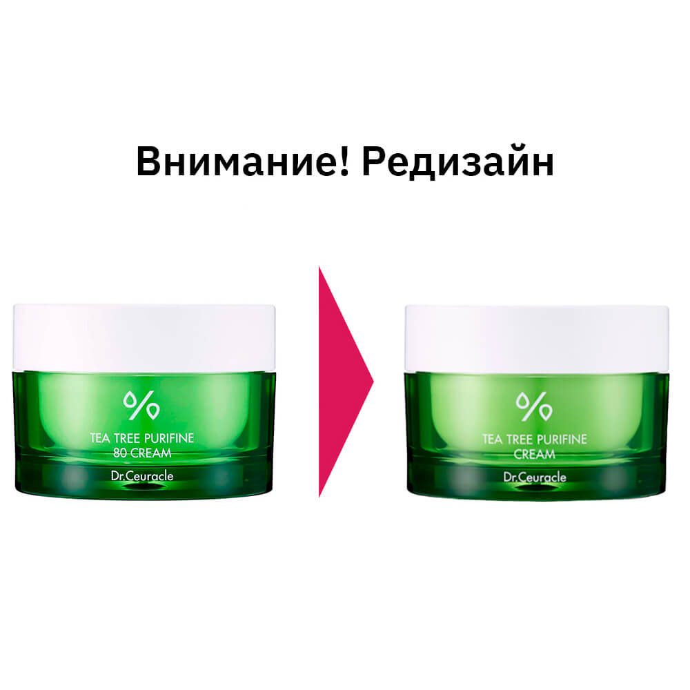Крем для проблемной кожи с 85% чайного дерева Dr.Ceuracle Tea Tree Purifine Cream успокаивает и снимает раздражение, запускает процесс восстановления кожи, устраняет покраснение и зуд, уменьшает жирный блеск и предотвращает появление акне и воспалений. Содержит сквалан, пантенол, церамиды, гиалуроновую кислоту, масла ромашки и лаванды.