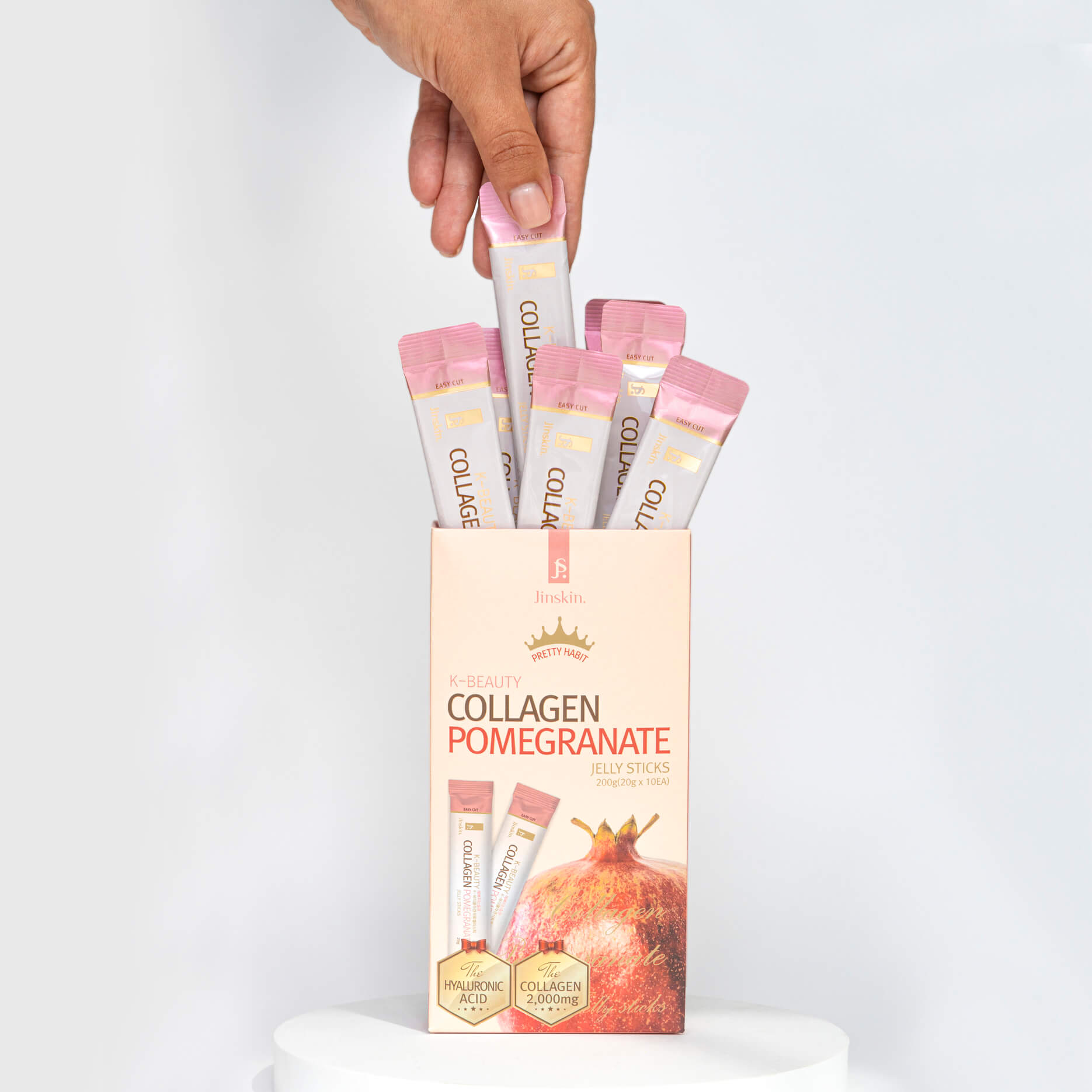 Коллагеновое желе с гранатом Jinskin Collagen Pomegranate Jelly Sticks — это заряд полезных веществ для молодости кожи и здоровья костей и суставов! Вкусное желе помогает улучшить состояние ногтей и волос, помогает бороться со старением. Богатый коктейль включает в себя низкомолекулярный коллаген (2,000 mg), гиалуроновую кислоту, витамин С и концентрат граната.