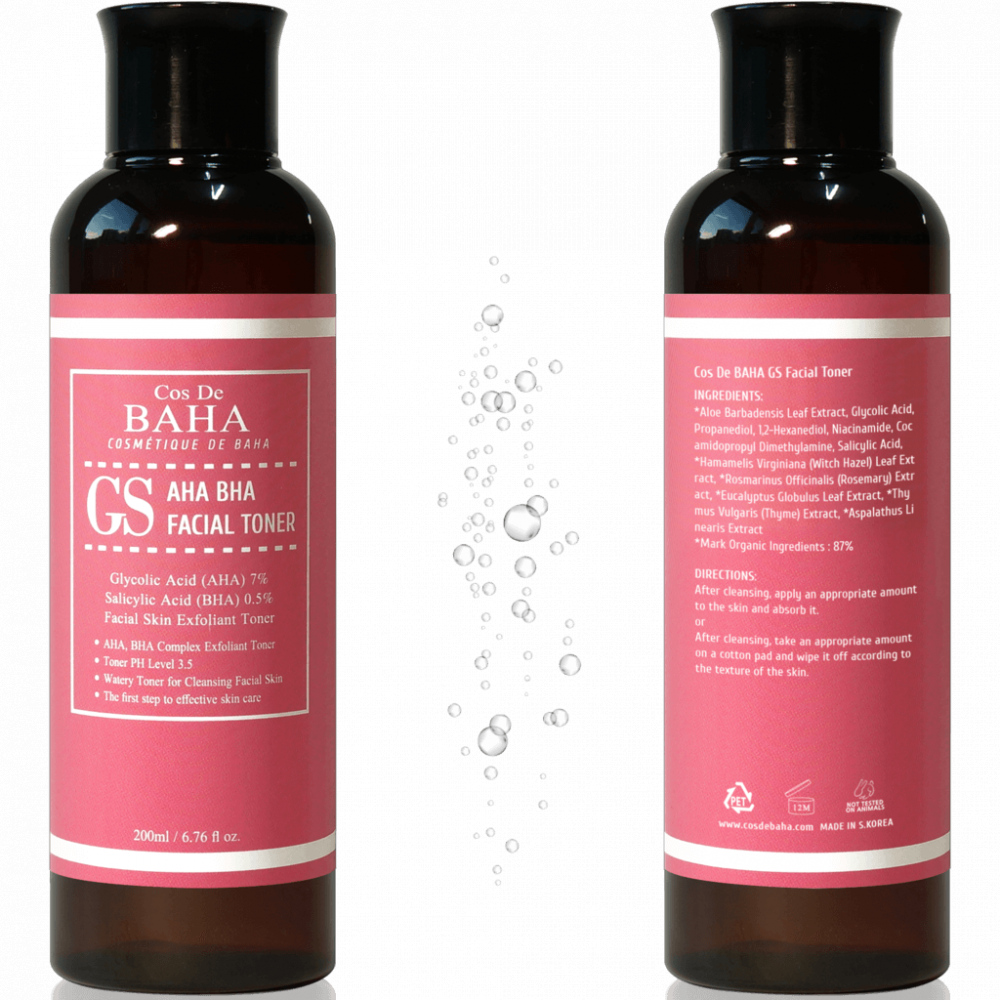 Тоник-эксфолиант с кислотами для проблемной кожи Cos de Baha AHA/BHA GS Toner отшелушивает омертвевшие клетки, борется с воспалениями, акне и угревой сыпью, предотвращает появление акне, смягчает и разглаживает рельеф. Осветляет постакне и выравнивает тон. Имеет pH 3,5, подходит для кожи, склонной к жирности. Содержит комплекс кислот, экстракты трав и ниацинамид.