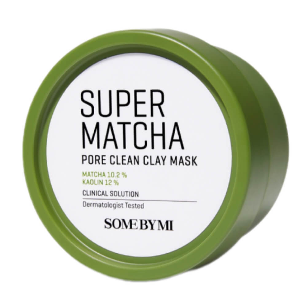 Глиняная маска с чаем матча Some By Mi Super Matcha Pore Clean Clay Mask глубоко очищает поры от загрязнений, устраняет излишки себума и предотвращает образование черных точек. Маска оказывает антиоксидантное действие, выравнивает тон и способствует увлажнению кожи, эффективно смягчает, выравнивает рельеф. Содержит несколько видов вытяжек из зеленого чая, комплекс центеллы азиатской и экстракт коры белой ивы — источник BHA-кислоты.