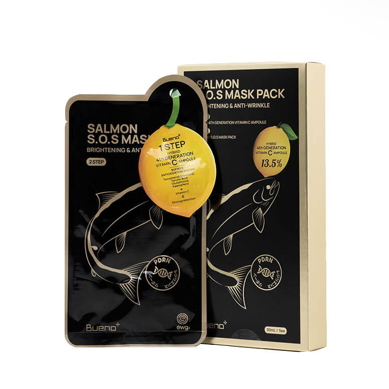 Двухступенчатая лифтинг-маска с экстрактом лосося Bueno Salmon S.O.S Mask интенсивно насыщает кожу активными питательными компонентами, дает мгновенный эффект лифтинга, выравнивает рельеф кожи. Разглаживает мелкие морщинки и уменьшает глубину заломов, оказывает антиоксидантное действие и укрепляет липидный барьер.